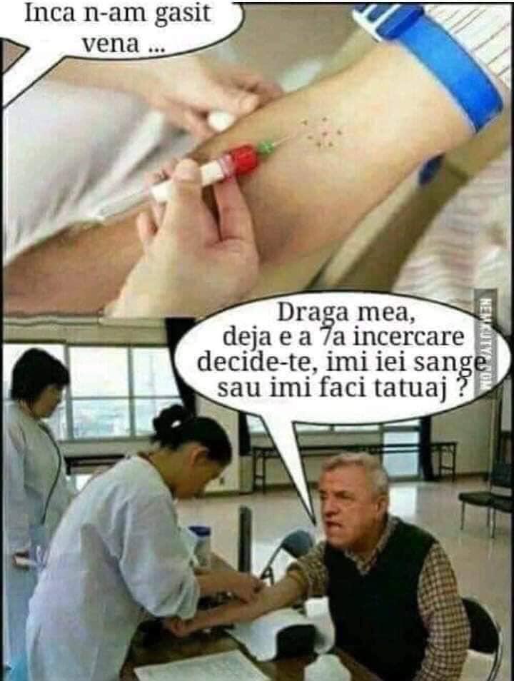 Râsu Plânsu de 01/23/202015:58 La analize Încercarea moarte n-are! Așa și asistentele cu găsitul venei când vine vorba de analize… Partajează asta: Partajează prin WhatsApp(Se deschide într-o fereastră nouă) WhatsApp Partajează pe Facebook(Se deschide într-o fereastră nouă) Facebook Partajează pe Reddit(Se deschide într-o fereastră nouă) Reddit Apreciază Încarc... Related