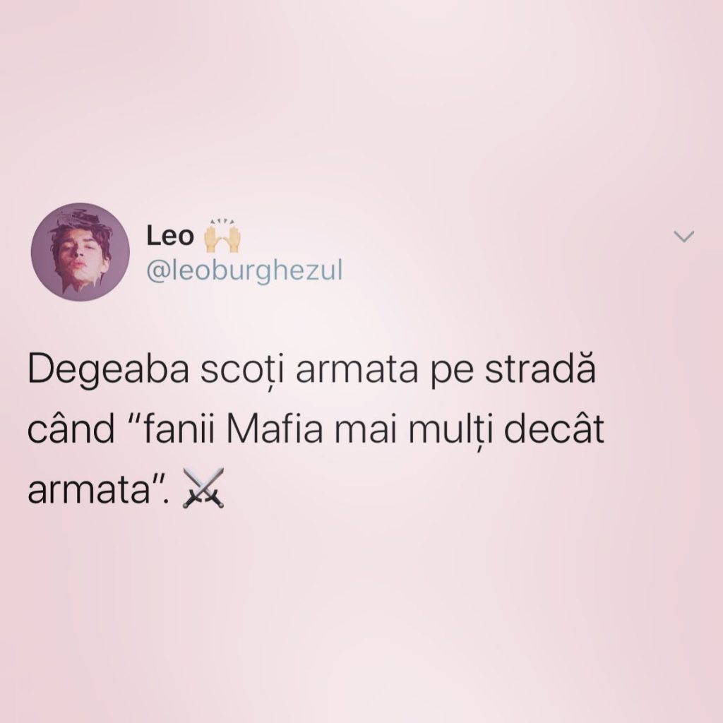 Râsu Plânsu de 03/24/202016:21 Mafia B.UG Mafia spunea ceva cândva…prevedeau oare coronavirus și scoaterea armatei în stradă? Partajează asta: Partajează prin WhatsApp(Se deschide într-o fereastră nouă) WhatsApp Partajează pe Facebook(Se deschide într-o fereastră nouă) Facebook Partajează pe Reddit(Se deschide într-o fereastră nouă) Reddit Apreciază Încarc... Related