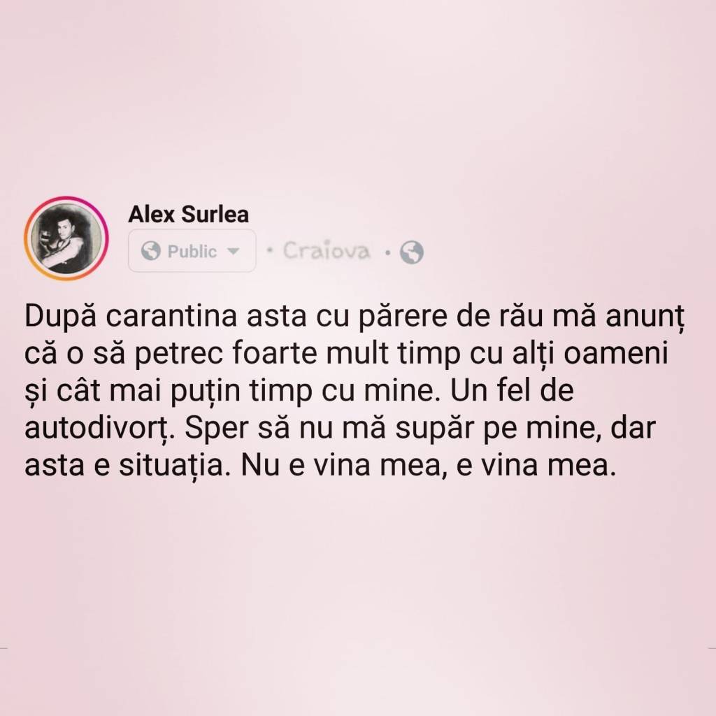 Râsu Plânsu de 04/08/202015:05 #Facts ME TIME, it’s over! Psihicul ca psihicul, dar cât mai ține carantină asta? Partajează asta: Partajează prin WhatsApp(Se deschide într-o fereastră nouă) WhatsApp Partajează pe Facebook(Se deschide într-o fereastră nouă) Facebook Partajează pe Reddit(Se deschide într-o fereastră nouă) Reddit Apreciază Încarc... Related