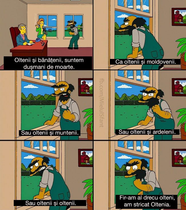 Râsu Plânsu de 05/20/202013:54 Oltenii Se zice că oltenii sunt cei mai răi de gură, oare de asta nu se prea înțeleg cu nimeni? Partajează asta: Partajează prin WhatsApp(Se deschide într-o fereastră nouă) WhatsApp Partajează pe Facebook(Se deschide într-o fereastră nouă) Facebook Partajează pe Reddit(Se deschide într-o fereastră nouă) Reddit Apreciază Încarc... Related