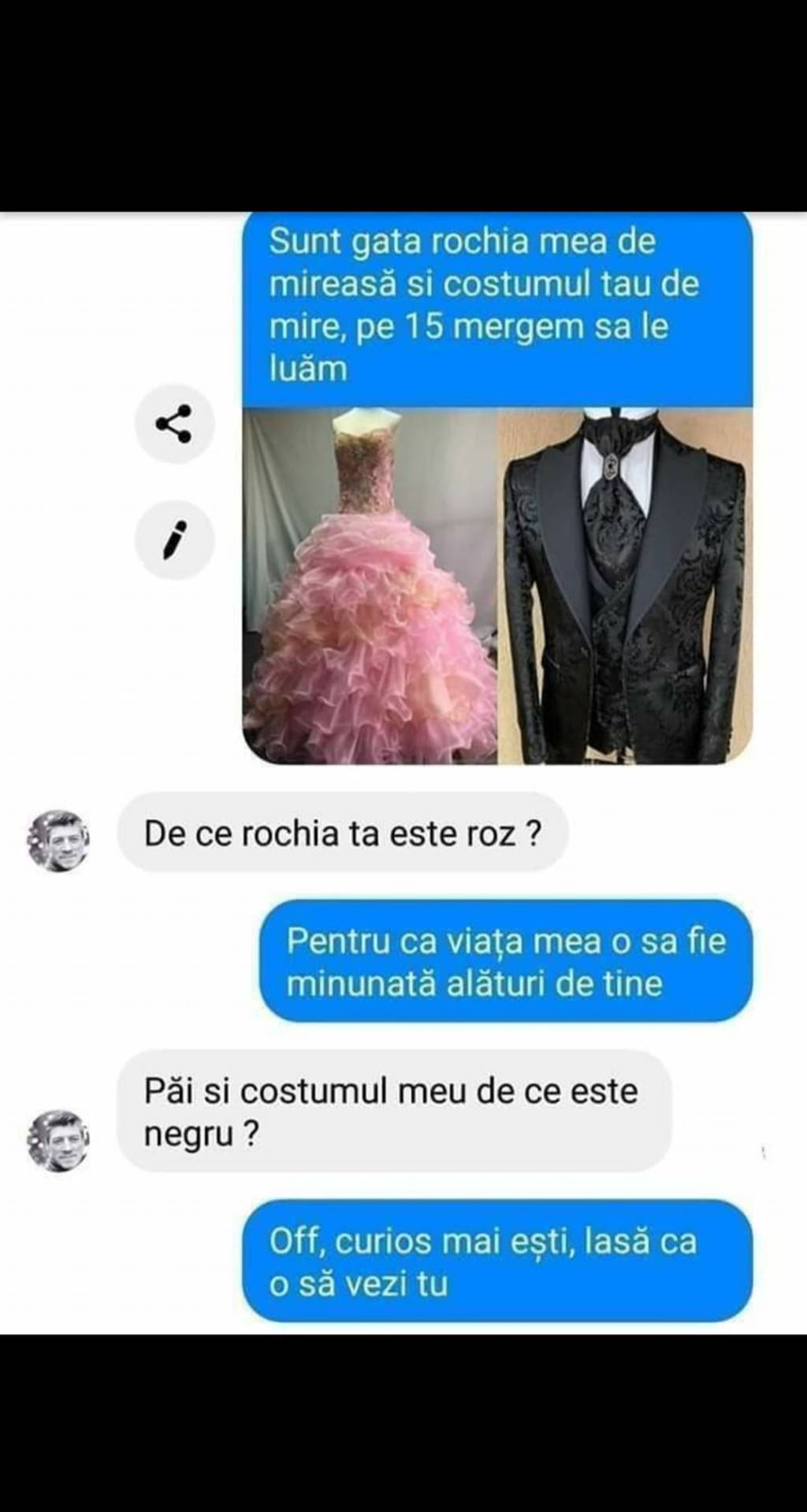 Râsu Plânsu de 06/04/202014:55 Gata de nuntă? V-ați gândit vreodată la simbolistica din spatele ținutelor mirilor? Mda. Nici eu. Partajează asta: Partajează prin WhatsApp(Se deschide într-o fereastră nouă) WhatsApp Partajează pe Facebook(Se deschide într-o fereastră nouă) Facebook Partajează pe Reddit(Se deschide într-o fereastră nouă) Reddit Apreciază Încarc... Related