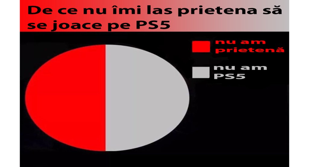 Nu am bani să îmi cumpăr nici prietenă, nici ps5. Totuși nu găsesc vreun motiv să ai și prietenă și ps5, singurul cred că ar fi: să te dai mare.