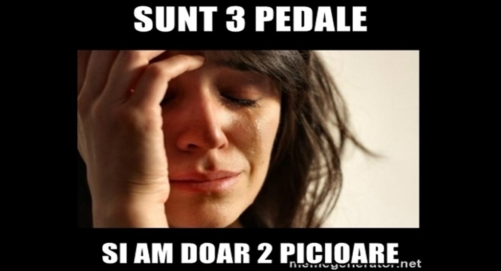 Acel moment când sunt 3 pedale și ai doar 2 picioare, și nu știi cum o să conduci mașina în condițiile astea.