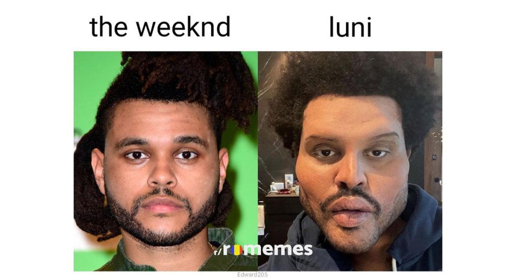 În stânga este The weeknd în weekend, și în partea dreaptă este The weeknd, dar în timpul săptămânii. Toți avem o fața pe durata weekend-ului și alta pe durata săptămânii.