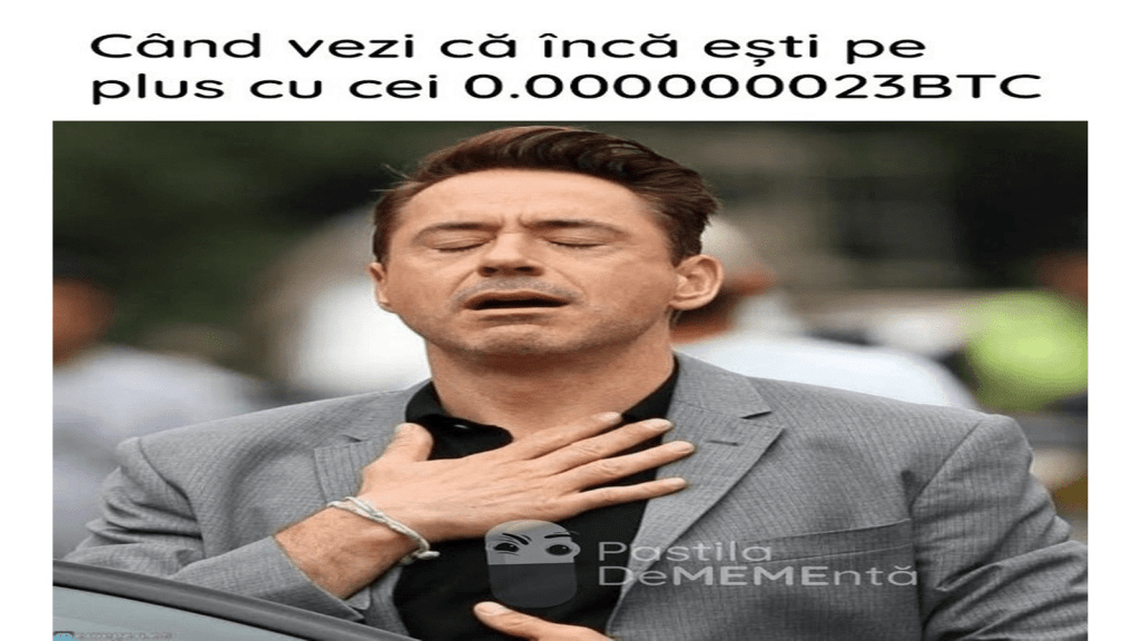 General, International, Râsu Plânsu, Retele sociale de 02/16/202114:52 Investiții Acel moment când te liniștești când vezi că ești pe plus cu cei 0.00000000023 bitcoin ai tai. Partajează asta: Partajează prin WhatsApp(Se deschide într-o fereastră nouă) WhatsApp Partajează pe Facebook(Se deschide într-o fereastră nouă) Facebook Partajează pe Reddit(Se deschide într-o fereastră nouă) Reddit Apreciază Încarc... Related