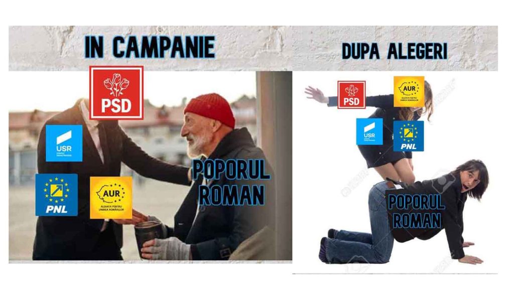 Așa se prezintă partidele politice în timpul campaniei de promovare, versus, cum se comportă după alegeri. Ce părere aveți?