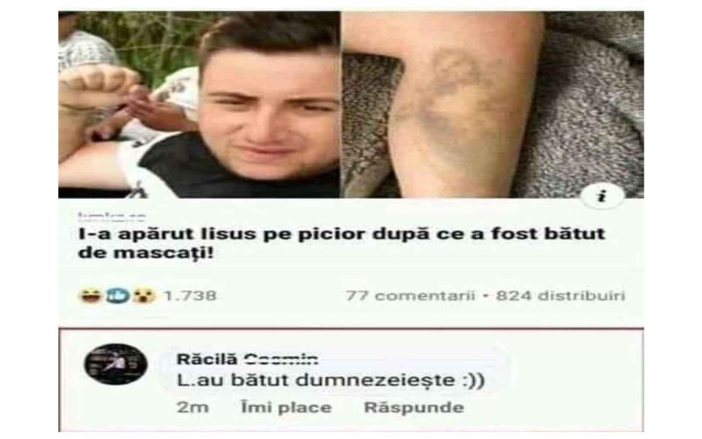 Râsu Plânsu, Religie de 03/07/202112:16 A apărut Iisus Acel moment când te bate dumnezeiește, și îți apare Iiisus pe picior. Oare ce înseamnă asta? Partajează asta: Partajează prin WhatsApp(Se deschide într-o fereastră nouă) WhatsApp Partajează pe Facebook(Se deschide într-o fereastră nouă) Facebook Partajează pe Reddit(Se deschide într-o fereastră nouă) Reddit Apreciază Încarc... Related