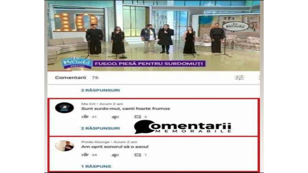 General, Râsu Plânsu, TV de 03/26/202112:59 Foarte frumoasă melodia Foarte frumoasă melodia, am oprit sonorul să o ascult. „Sunt surdo-mut, cânți foarte frumos” Partajează asta: Partajează prin WhatsApp(Se deschide într-o fereastră nouă) WhatsApp Partajează pe Facebook(Se deschide într-o fereastră nouă) Facebook Partajează pe Reddit(Se deschide într-o fereastră nouă) Reddit Apreciază Încarc... Related