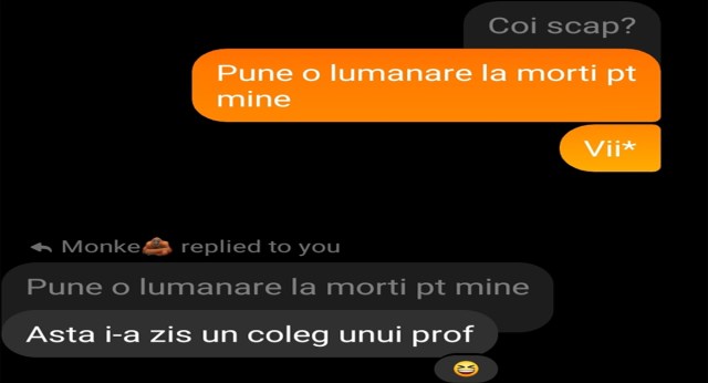 Când știi că nu treci la o materie și îl anunți pe profesor din timp că nu o duci bine. Așa că îl rogi să îți pună o lumânare la morți.
