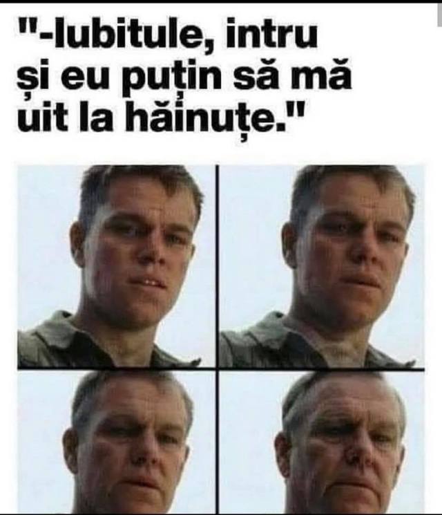 ”Nevastă, nu vrei tu să-ți iei mai bine masca și să mergi la salon? Liniștea ar fi binevenită.”