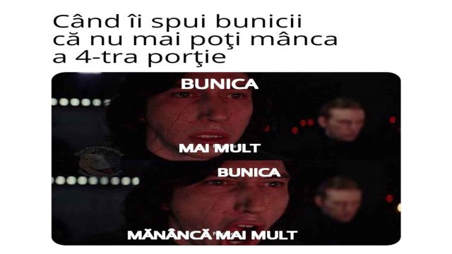 Când îi spui bunicii că nu mai poți mânca a patra porție, și ea se uită urât la tine și te roagă să mai mănânci.