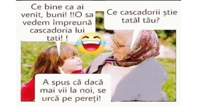 Dacă mai vine soacra în vizită, soțul se urcă pe pereți de nervi. Fiica nu știe despre ce e vorba, și crede ca face cascadorii